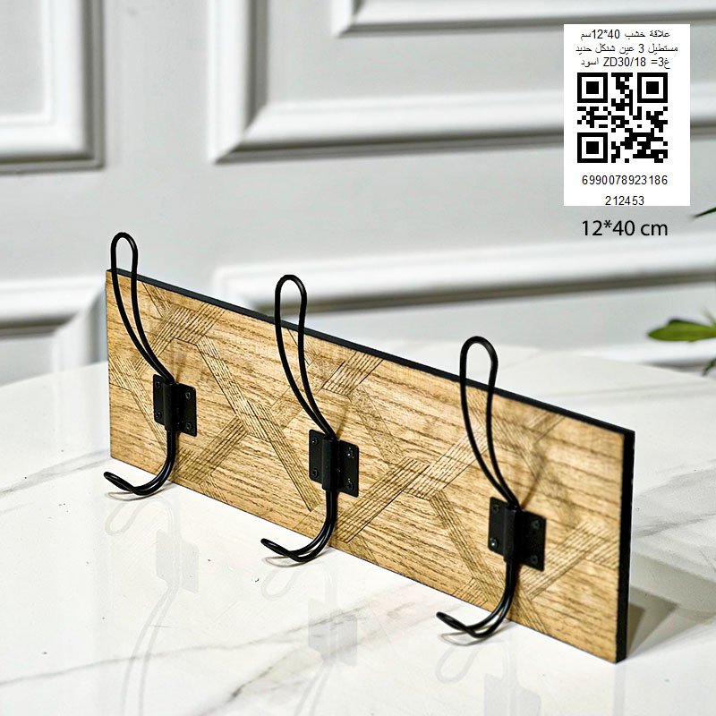علاقة خشب 40*12سم مستطيل 3 عين شنكل حديد اسود ZD30/18 =غ3
