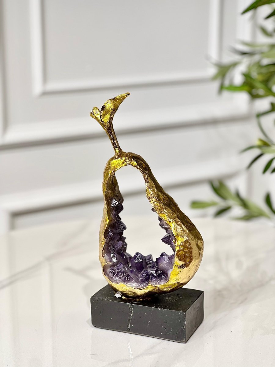 تحفة بولاريزن 28سم ذهبي شكل اجاصة محجرة من الداخل قاعدة مستطيل اسود SM95/84 =غ3