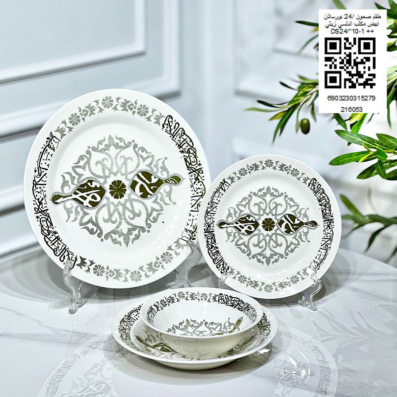 طقم صحون /24 بورسلان ابيض مكتب اندلسي زيتي DS24/"10-1 ++