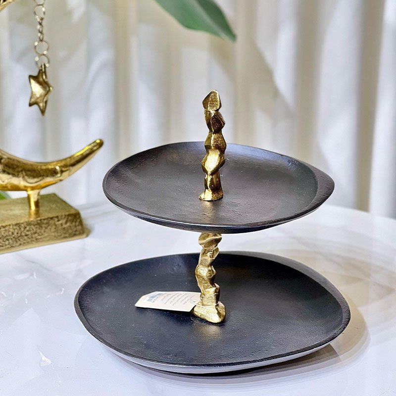 مضيفة 2 طبقة مدور نحاس اسود هندي يد ذهبي 87306 %ه3