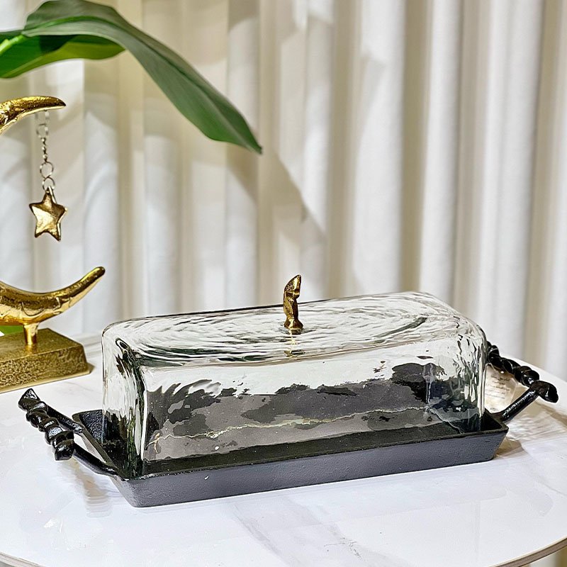 مضيفة مستطيل 38*18سم نحاس اسود يد ذهبي 87374L %ه3