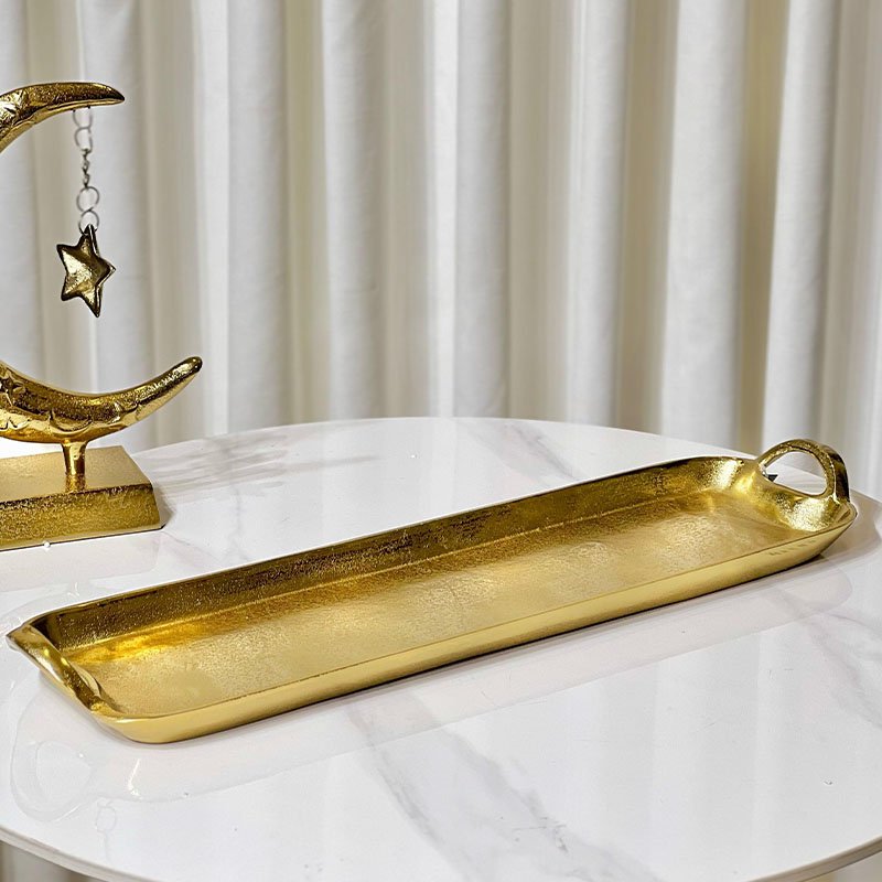 صينية مستطيل 52*16 سم نحاس ذهبي هندي بيدين 88175 %ه3
