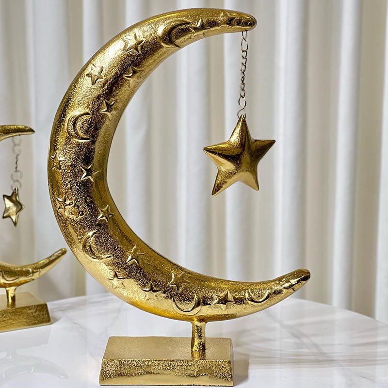 تحفة شكل هلال رمضان +نجمة 32سم تعليق نحاس ذهبي هندي 88905M %ه3