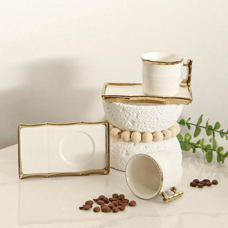 طقم فناجين قهوة 12/12 بورسلان شكل برميل ابيض حيف و يد ذهبي GY2407 ++