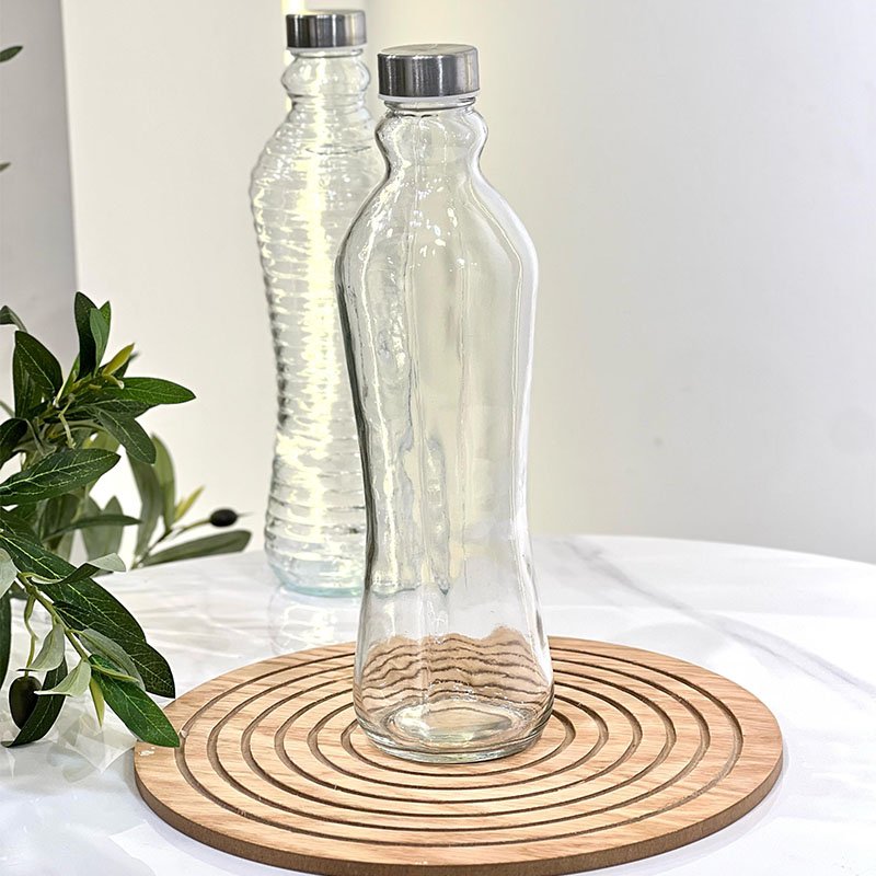 قنية ماء 1 لتر زجاج سادة غطا ستانلس ASC1101 ++
