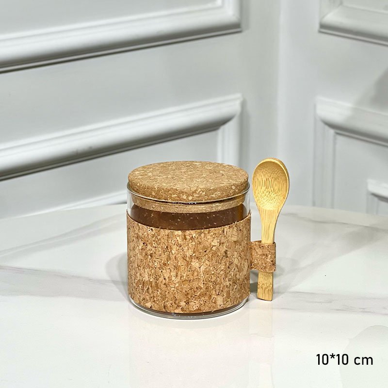 مطربان زجاج شفاف مدور 10*10سم خصر وغطا خشب مع ملعقة G++ ASC1111