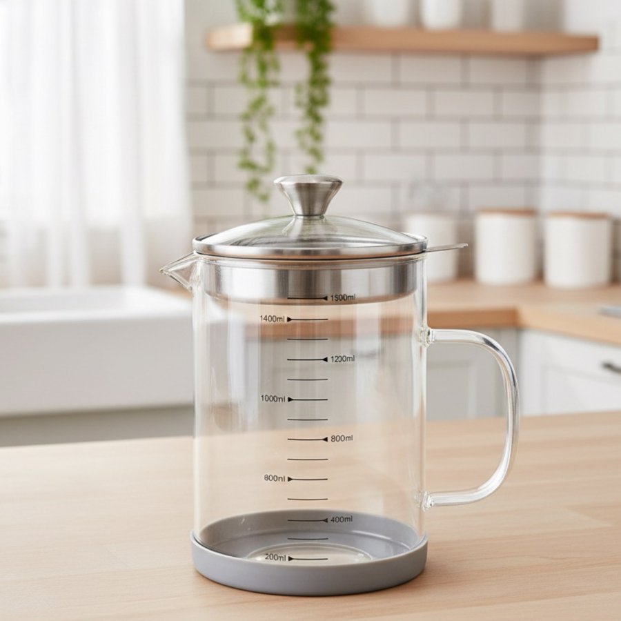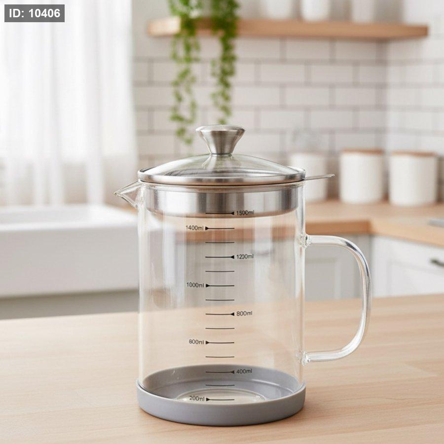 ابريق زيت زجاج شفاف 1500مل غطا زجاج مصفاة ستانلس ستيل G++ ASC1108
