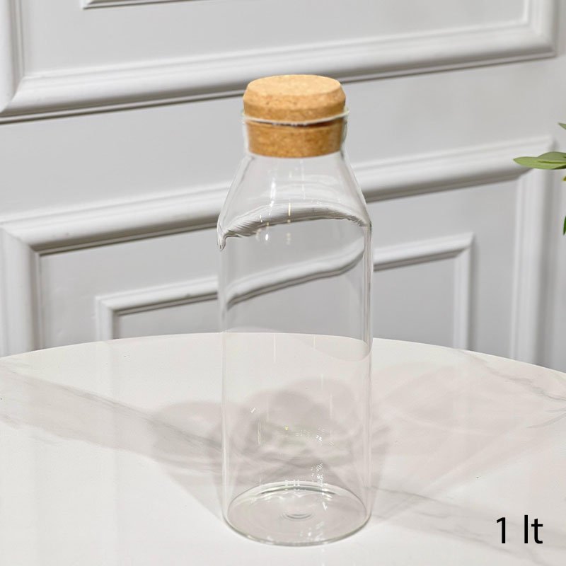 قنينة ماء زجاج سادة 1لتر مدور غطا خشب G++ ASC1103