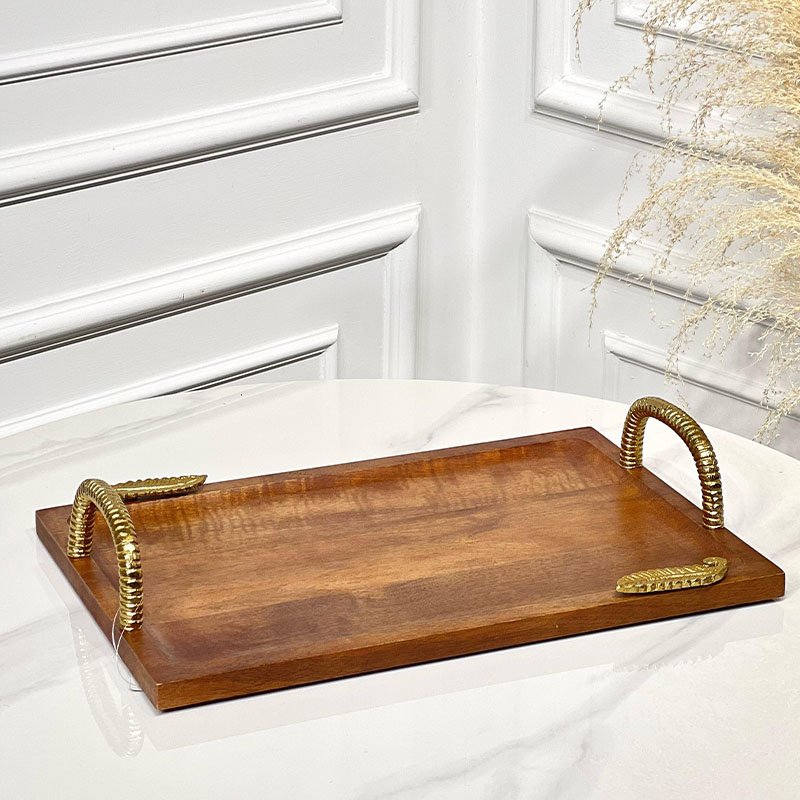 صينية خشب مستطيل 40*27سم يدين قوس زوايا ورقة نحاس هندي 202402-S %ه4