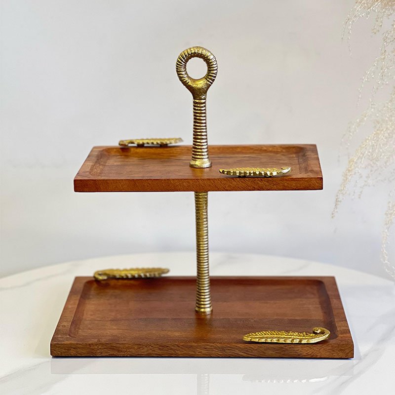 مضيفة خشب مستطيل 2 طبقة مسكة حلقة زوايا ورقة نحاس هندي 202405 %ه4