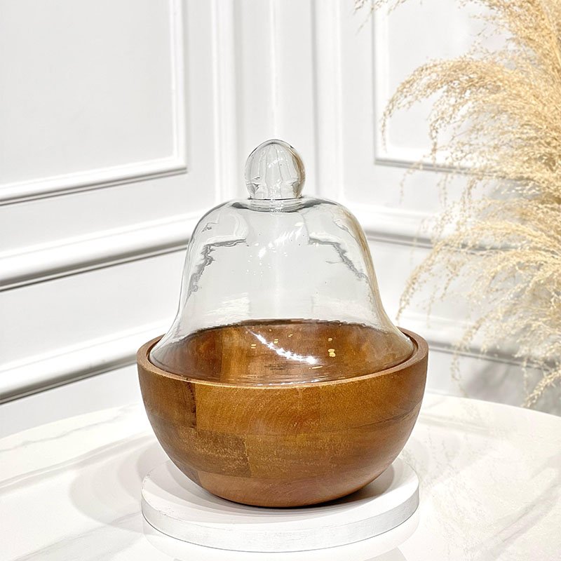 صحن خشب جور 25سم مدور غطا زجاج جرس 202425 %ه4