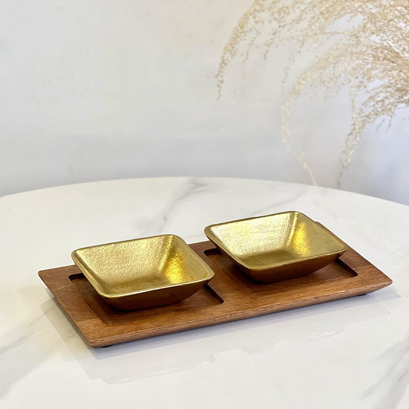 طقم/3 مضيفة خشب مستطيل + 2 صحن نحاس هندي 202436 %ه4