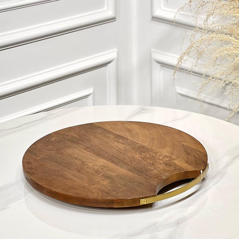 لوح تقديم خشب مدور 35سم يد نحاس هندي 202446 %ه4