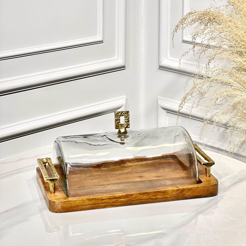 جاط حلويات خشب مستطيل 36*22سم غطا زجاج يدين ومسكة مقبض نحاس هندي 202452 %ه4