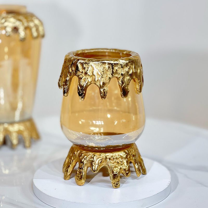 مضيفة زجاج عسلي21سم حيف وقاعدة معرج نحاس هندي 8239369 %ه5