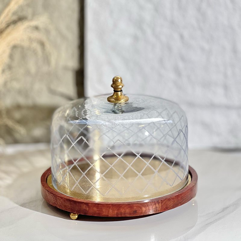مضيفة خشب وجه نحاس هندي 28سم غطا زجاج بقلاوة 8239390 %ه5