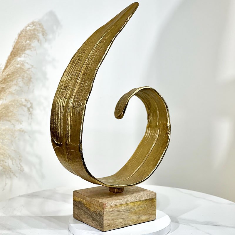 تحفة شكل ورقة ملتوية51سم نحاس هندي قاعدة خشب 8239393 %ه5