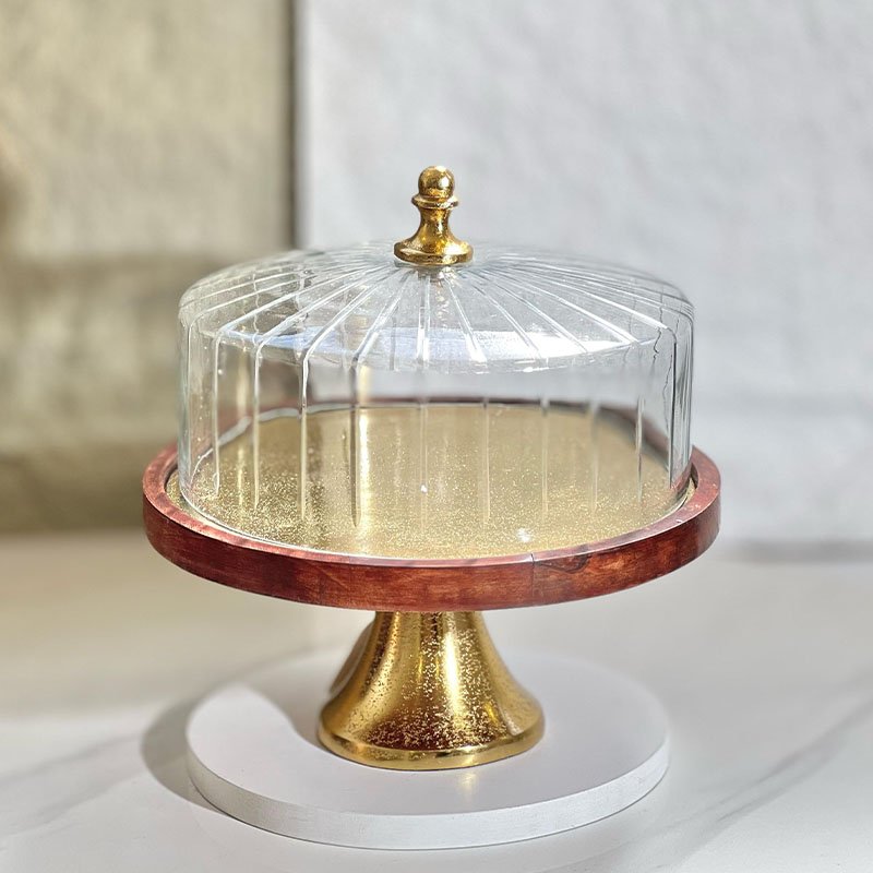 مضيفة خشب وجه ورجل نحاس هندي 28سم غطا زجاج محزز 8239405 %ه5