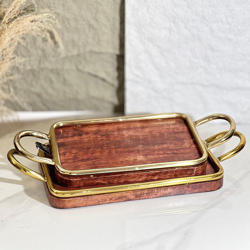 طقم/2 صواني خشب مستطيل 45*18سم +50*23سم حيف نحاس هندي 8239407/08 %ه5
