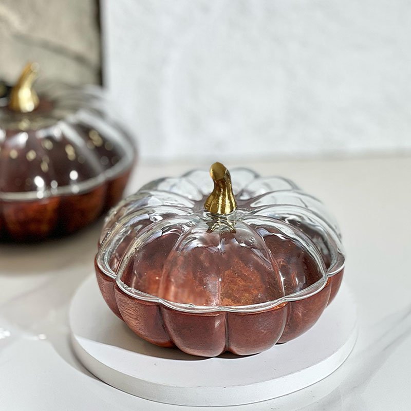 مضيفة خشب شكل يقطينة 22سم غطا زجاج مسكة نحاس هندي 8239410 %ه5