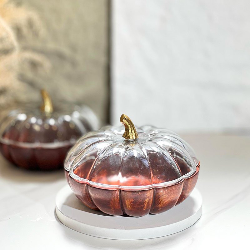 مضيفة خشب شكل يقطينة 20سم غطا زجاج مسكة نحاس هندي 8239411 %ه5