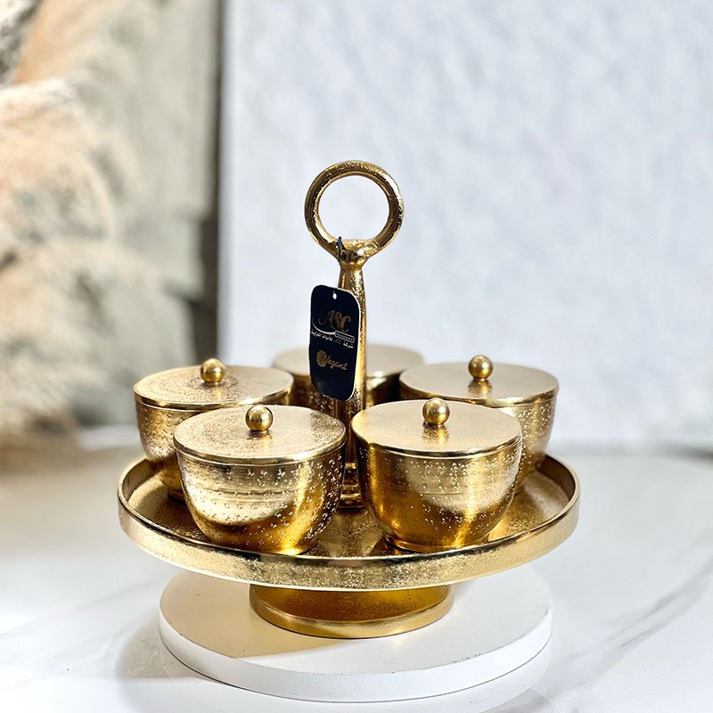 طقم/6 مضيفة 28سم نحاس مدور بقاعدة +5 صحن جور بغطا مسكة حلقة نحاس هندي 8239417 %ه5