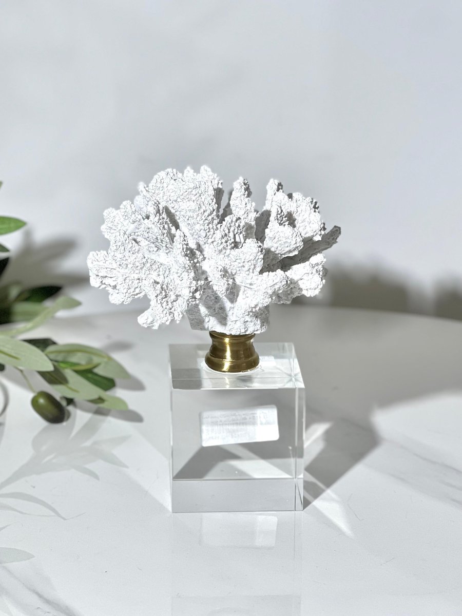 تحفة جبص 20سم شكل مرجان كبير خصر ذهبي قاعدة مربع كرستال شفاف ZD42/2 = 4K