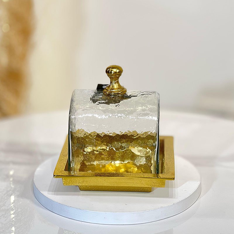 مضيفة مستطيل 2عين غطا زجاج نحاس هندي 88772 %ه6