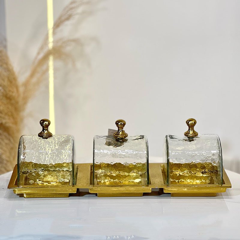 مضيفة مقطع 3 عين مربع 47*16سم نحاس هندي غطا قبة زجاج 88791 %ه6