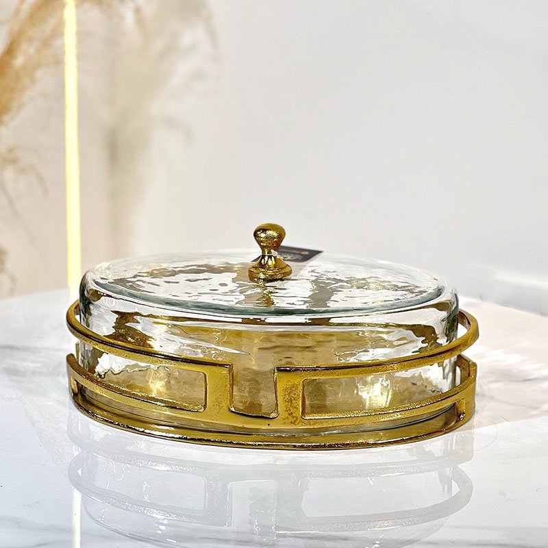 جاط كيك بيضاوي 30*20سم اطار نحاس هندي غطا زجاج 85011 %ه6