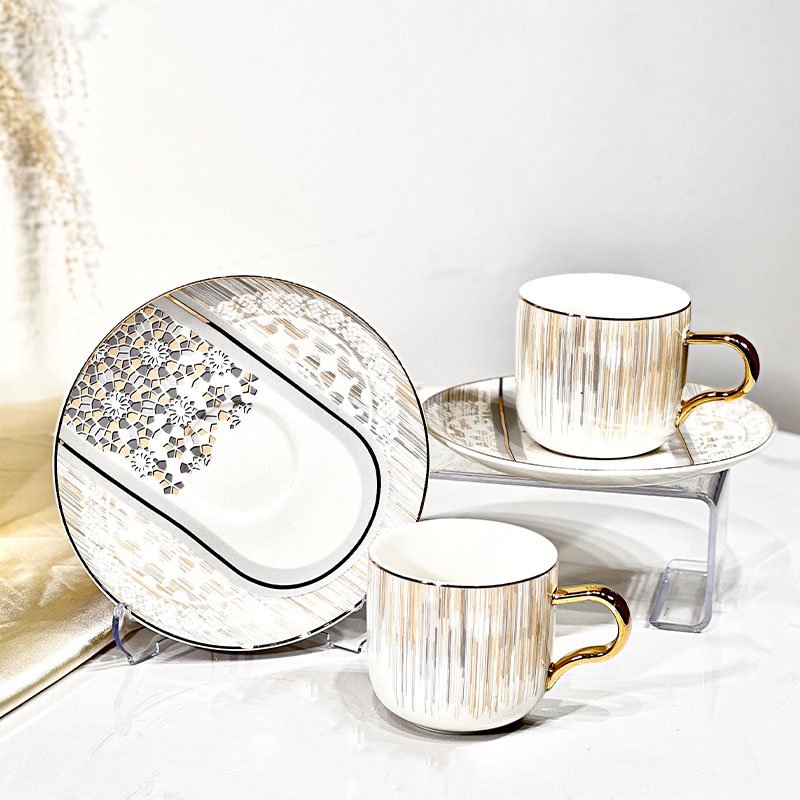 طقم فناجين شاي 6/6 بورسلان بيج موشح 4910-6L-1880-2G حيف ويد ذهبي ++BP