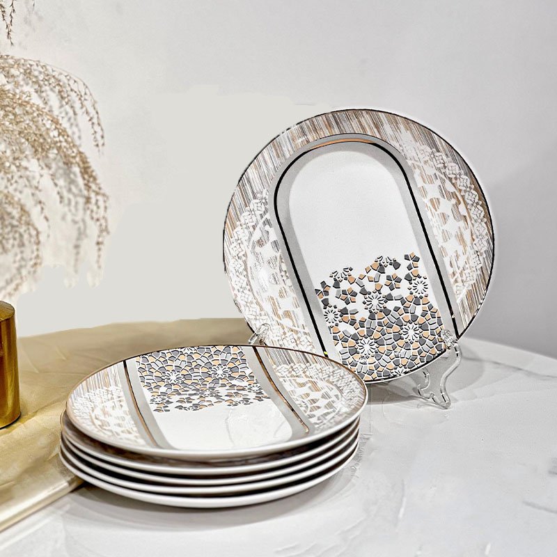 طقم صحون فواكة/6 بورسلان بيج موشح YJ8092-8-1880-2G حيف ذهبي ++BP