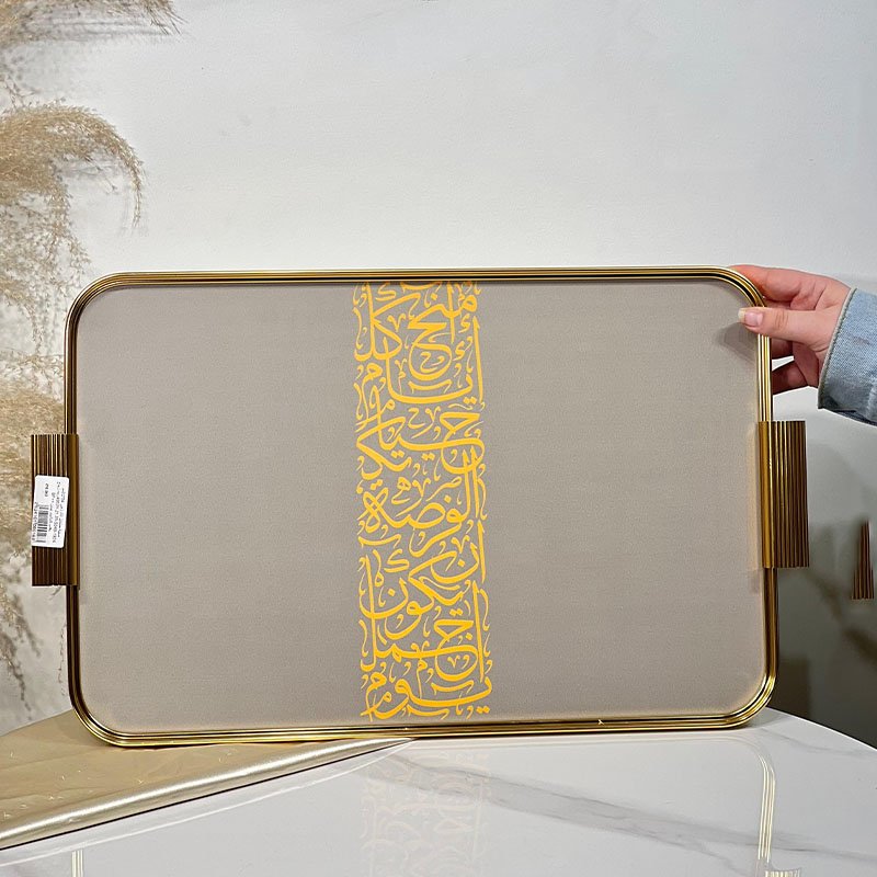 صينية مستطيل تنك ذهبي 54*32سم 4953Y-21.35-S349-1924 وجه زجاج كابتشينو مكتب فرصة بيدين ++BP