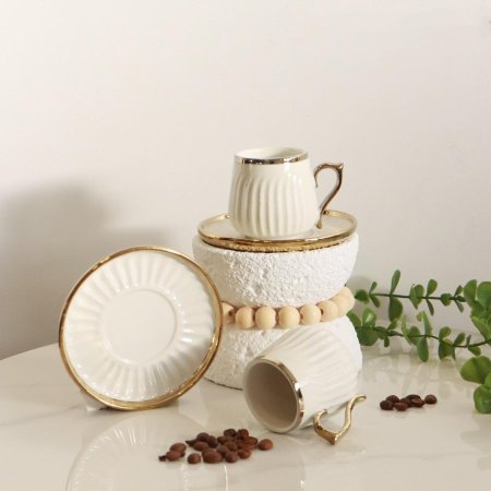 طقم فناجين شاي6/6 بورسلان ابيض 4920BH-6L-1967G حيف ويد ذهبي ++BP