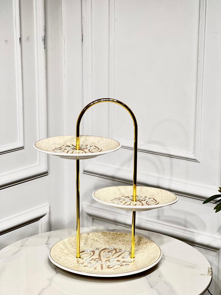 مضيفة مدور 3 طبقة بيج مكتب مسكة قوس ذهبي K57 ++ن