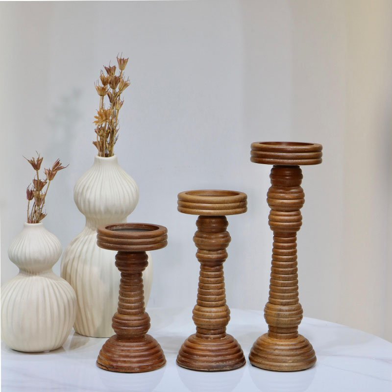 طقم/3 شمعدان شمع 20/25/33 خشب هندي حلقات HO202429S/M/L وجه تنك اسود %ه7