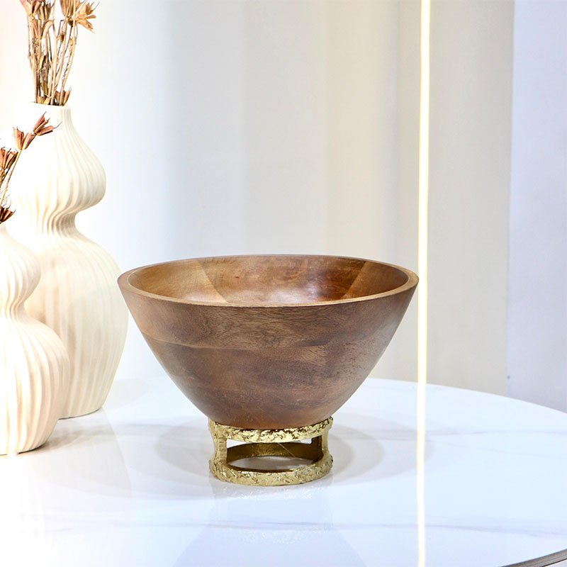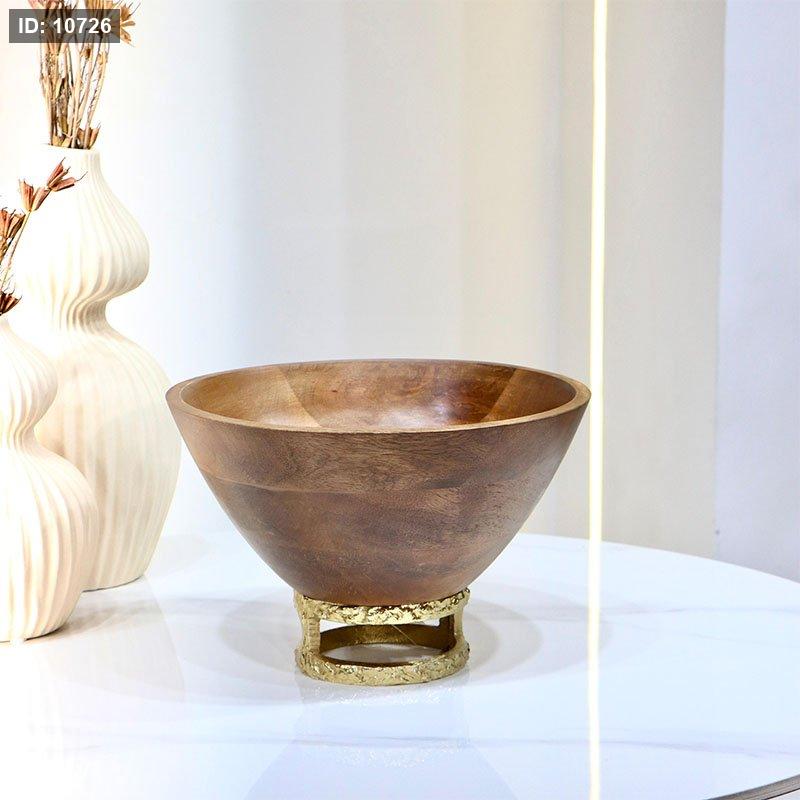 جاط فواكة خشب مدور 30سم قاعدة نحاس هندي مبزر HO202443 %ه7