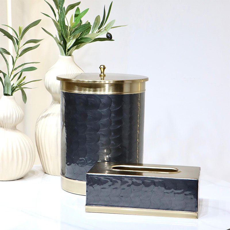 طقم سطل +بكيت محارم مدوراسود صدفة هندي ذهبي DI-26225-3 %ه8