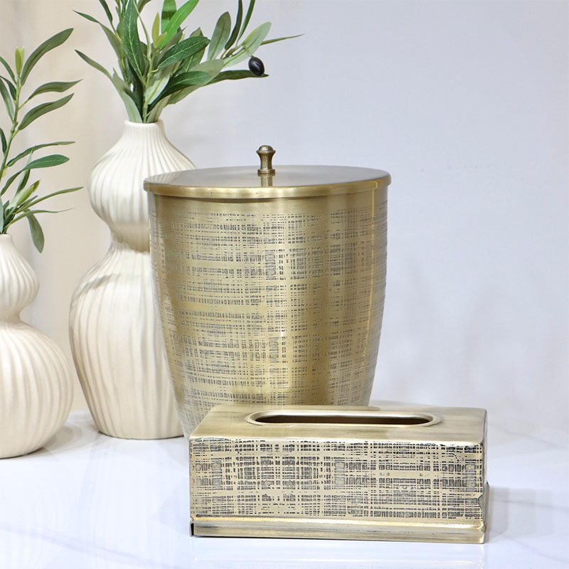 طقم سطل +بكيت محارم بيضاوي ذهبي موشح اسود هندي ذهبي DI-26225-7 %ه8