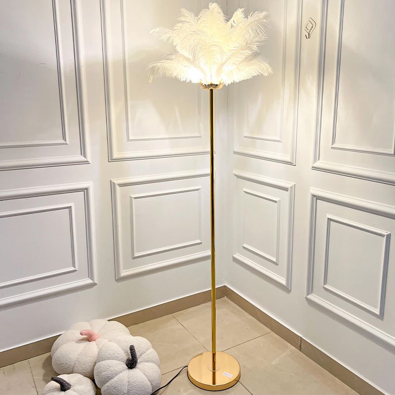 سهارة ديكور عمود ذهبي قاعدة مدور شيد ريش ابيض SM113/9 =ط4س