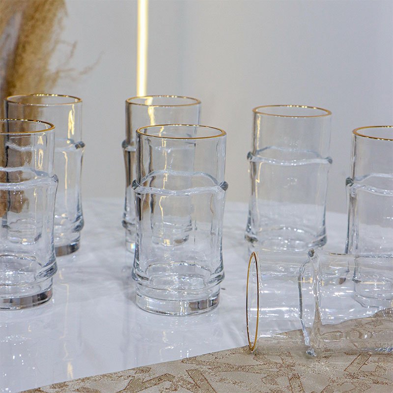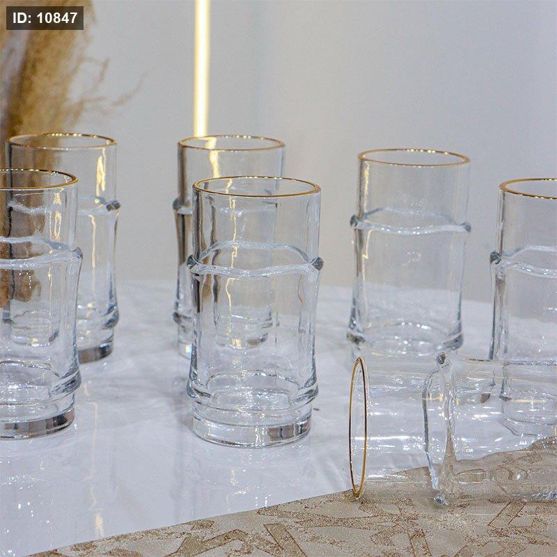 طقم كاسة ماء/12زجاج سادة خصرعريض سادة حيف ذهبي G2++ KX2255-D