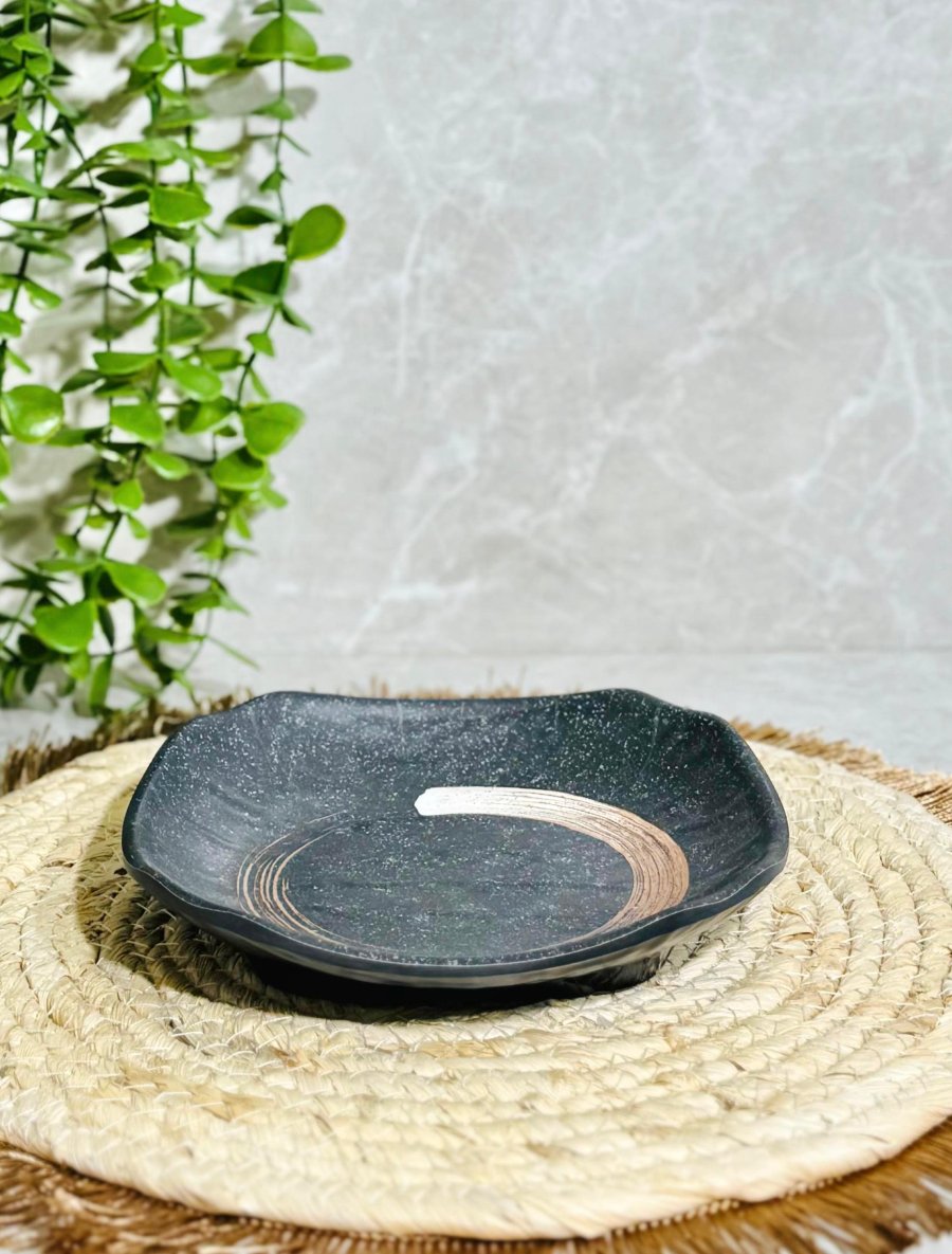 صحن مربع 17سم ميلامين اسود موشح بني AC219/10 =س24.3