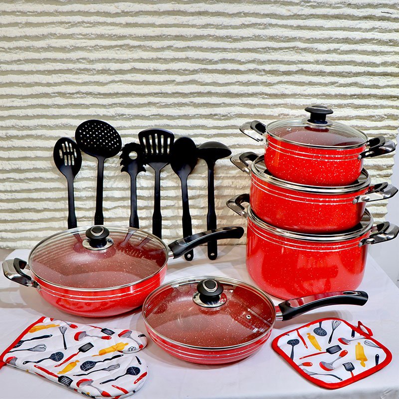 طقم /18 3 طناجر جرانيت + 2 مقلى + 6 مغارف + 2 كف سخن K130/4 =ض4 3 7