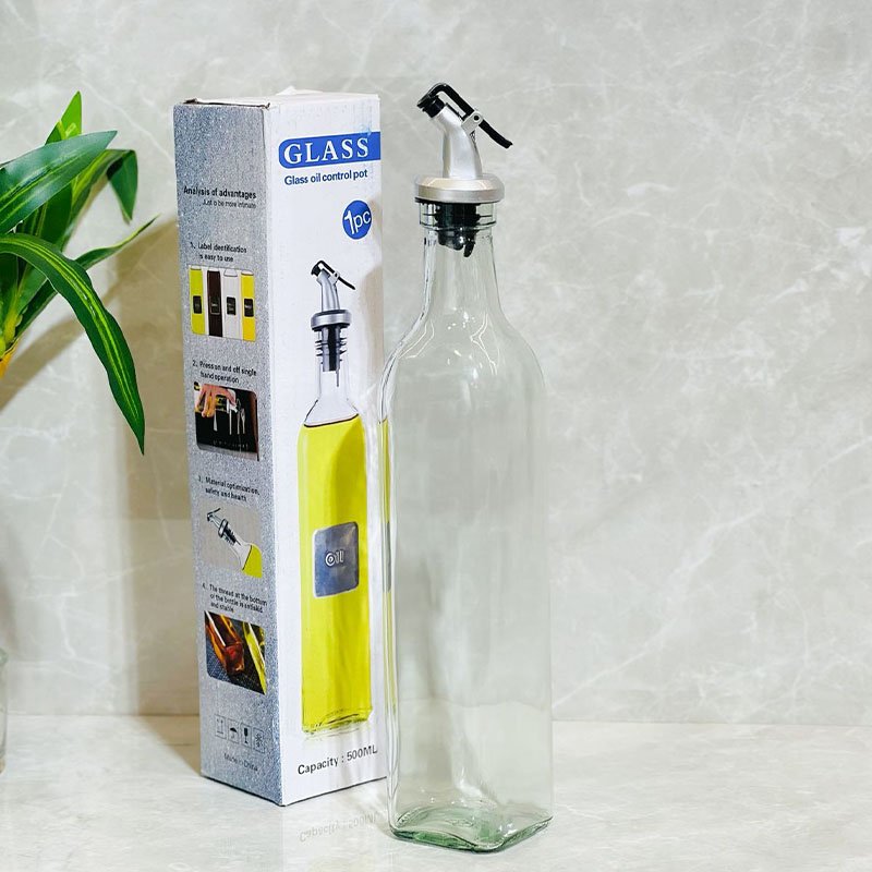 قنينة زيت زجاج مربع 500مل غطا ستانلس ضغط K115/25 =ض8