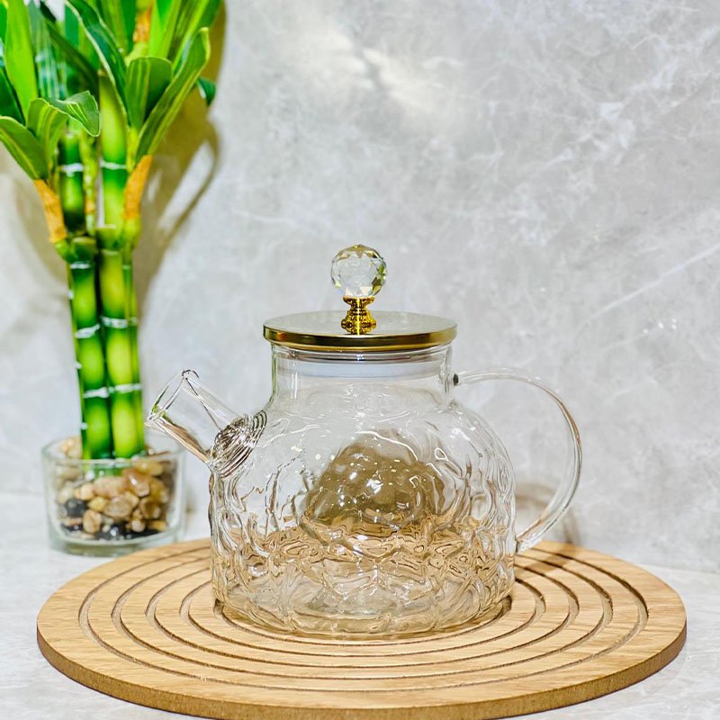ابريق شاي 1 لتر زجاج سادة بابلز غطا ستانلس ذهبي K8/7 =ض9