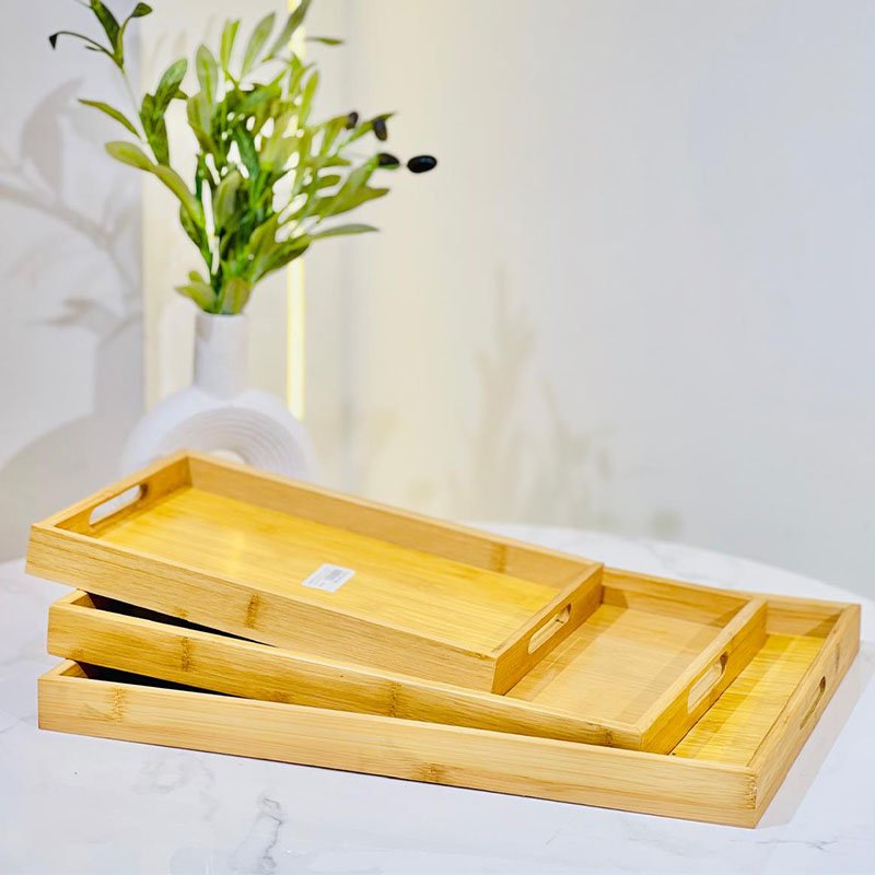 طقم صواني خشب بامبو/3 (33/40/44سم) مستطيل فاتح بيدين K140/1 =ض9