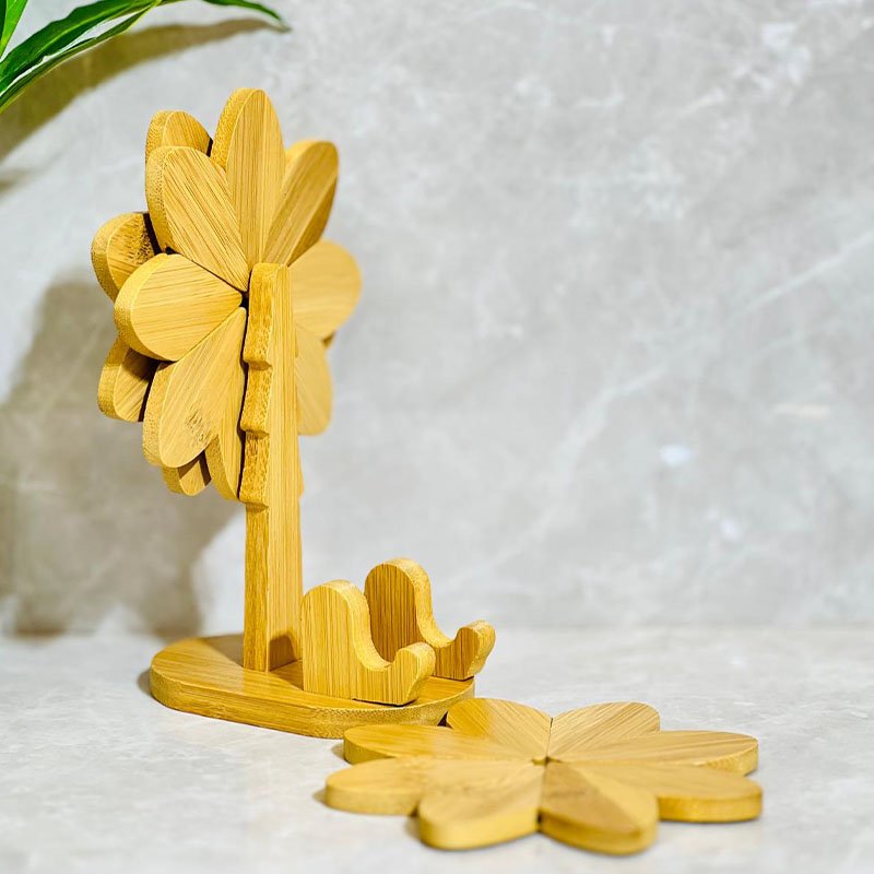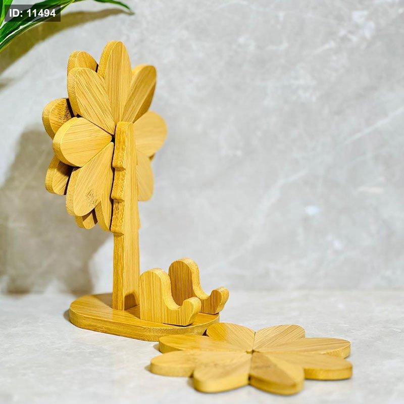 طقم/4 حمالة +3 كوستر شكل طاحونة قمح خشب بامبو غامق K140/8 =ض9