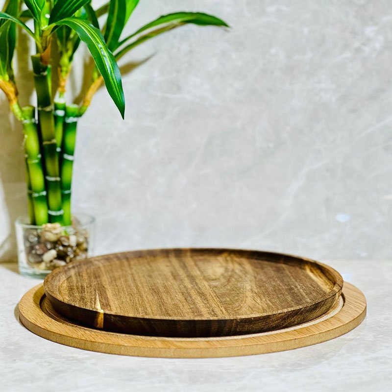 صينية خشب بامبو مدور 25سم غامق K140/20 =ض9