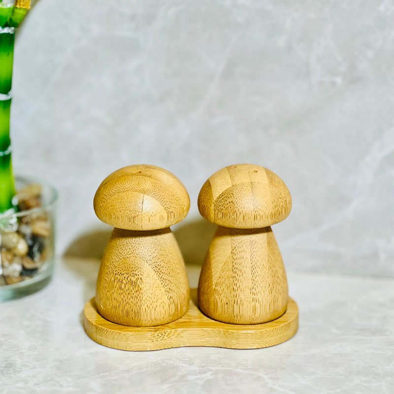 طقم/3 2مملحة +قاعدة خشب بامبو شكل فطر K140/23 =ض9