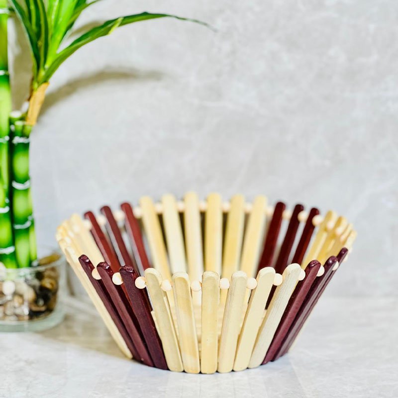 سلة خبز مدور 22سم خشب بامبو عيدان ملون K140/34 =ض9
